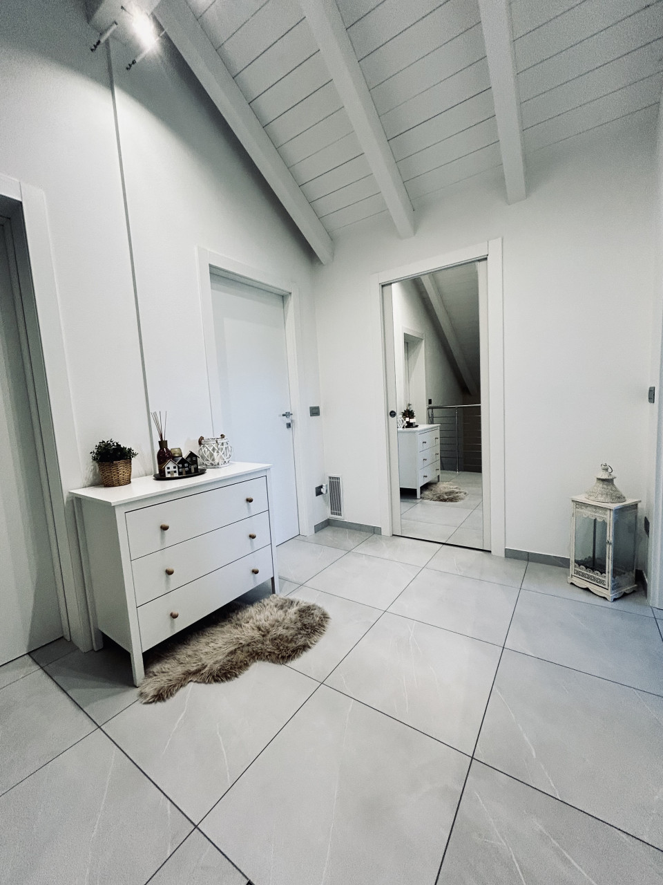Salendo al primo piano tramite una elegante scala in legno a vista, troverai tre camere da letto spaziose – perfette per famiglie o ospiti – insieme a una cabina armadio pratica ed organizzativa. Un ulteriore bagno completo con doccia completa questo livello.