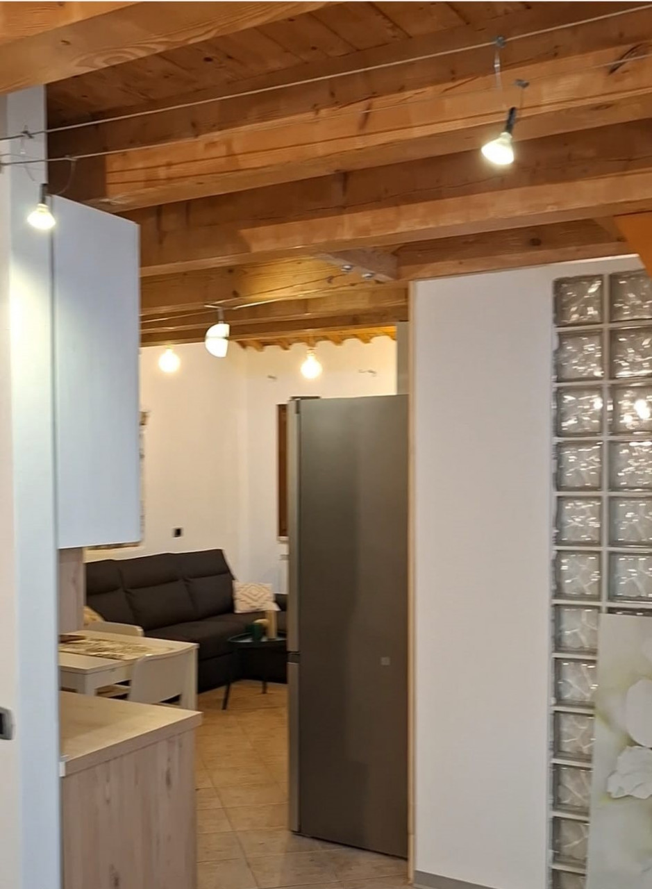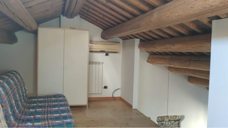 Elegante e originale appartamento duplex mansardato e travato, arredato con ingresso indipendente, senza spese condominiali, composto da salotto, cucina abitabile, camera da letto matrimoniale, bagno con doccia, lavanderia e ampia mansarda ideale come studio o seconda camera da letto. Finiture e arredi sono recenti e di ottima qualità. Posto auto scoperto.